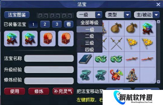 3、“法宝”界面优化,新增筛选功能与图鉴功能。