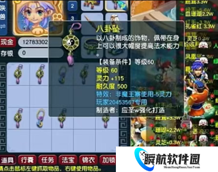 风少在【天蓬元帅】直接炸出60级法系梦想项链,初始灵力达到115点。