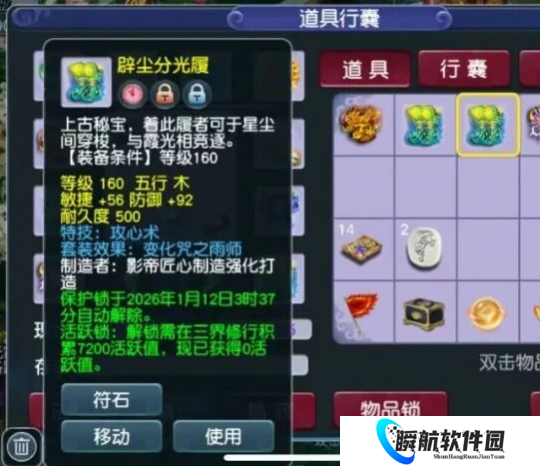 玩家鉴定出了160级攻心术鞋子,可以降低目标法防属性。