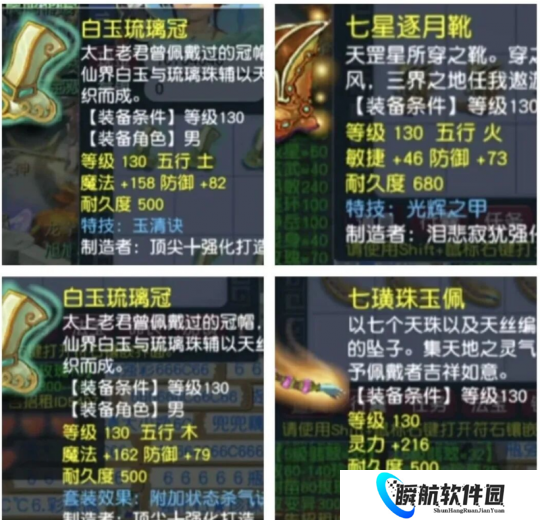 其中出得比较好的就是130级玉清诀的男头,130级的光辉之甲的鞋子,130级的杀气诀的男头,130级216点初灵的项链。