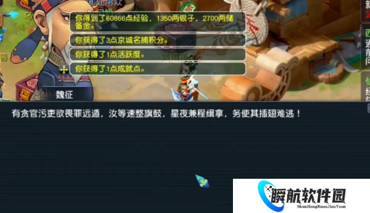每月第三周周日下午,等级达到40级的少侠可组队进行京城名捕任务,获得大量经验、金钱和储备金。