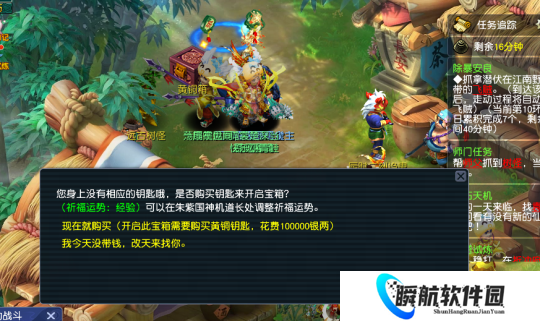 玩家在挖普通藏宝图时,有一定的几率挖塌神仙的藏宝室,会有各色的宝箱散落。开启宝箱需要人物达到40级。需要经验的玩家,建议先前往朱紫国(75,102)找神机道长祈福,然后选择经验。