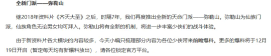 三是新门派弥勒山,为仙族天命门派,不限性别,有全新战斗机制,或有无底洞的封印、固伤与回血流派,老玩家无需从头练号。不过,资料片分 6 天公开,嘉年华限定锦衣和祥瑞仍无消息。
