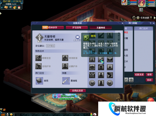 再比如五开的化生寺一般都是辅助属性和全魔属性,但是在一些稍微有点难度,处于不切辅助属性有些困难、切了属性又有点浪费的情况下,完全可以用魔化生的属性切护法金刚的经脉,甚至你可以点“销武”的经脉但是进去先不秒,直接推血,等危机解除了再群秒触发销武都是可以的。