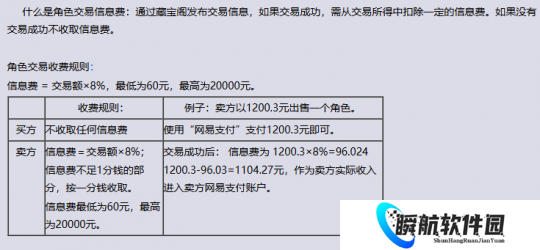 角色一旦交易成功将收取信息费,标准为交易额的8%(最低60,封顶2万)。