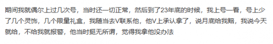 由于年底工作繁忙,该玩家上线时间减少。在两位好友提出“为方便一起刷任务”的请求后,他便将自己的账号与对方进行了互绑,并互相提供了解锁信息。没想到,其中一名好友竟借此盗取了他角色中多件高价值装备与物品。