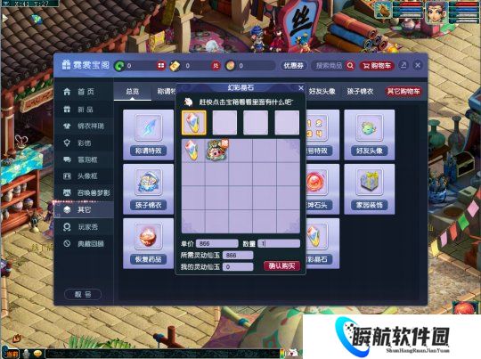 2.可以在霓裳宝阁--其它处直接选择购买幻彩晶石礼包,无需预订;购买礼包需要使用灵动仙玉,进行仙玉支付购买前需要解锁。