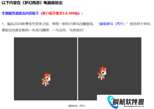 今年嘉年华的生肖神兽也在此次维护之后开始全服开售礼包,最高档的礼包里面有灵兜兜,可以指定神兽购进行购买,而灵兜兜仅在开放≥365天的服务器里面出售。该说不说,这个灵兜兜抢到就是赚,很多神兽的价格都是超过万元的,而超级神马(丙午)作为新出神兽,技能实用性肯定更强。