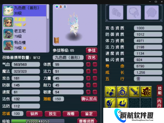 这只个性的7技能的九色鹿(人形)就比较不错了,而且已经打成了全红,赐福了3个技能。这只九色鹿攻击资质1332,成长1.246,还可以慢慢养起来。
