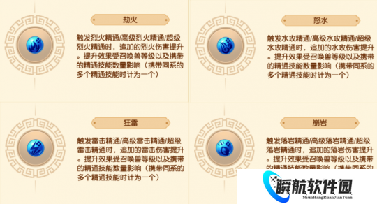 全新的召唤兽技能「四系法术精通」可以强化四系单体法术的输出,具体如下: