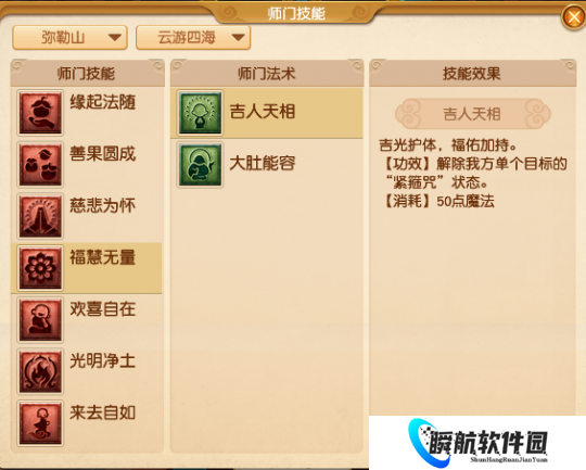 消耗50点魔法,解除己方单个目标的紧箍咒。