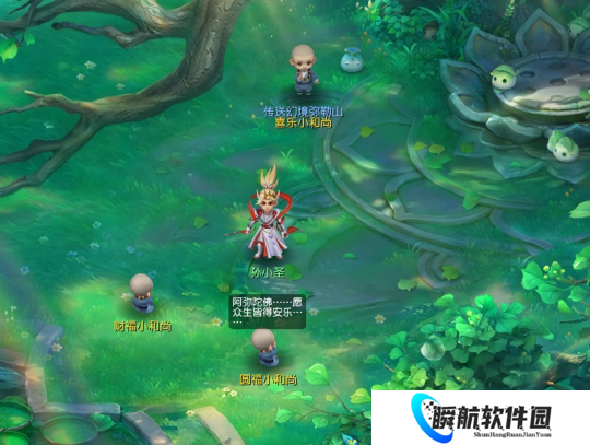 在弥勒山场景内共有五位造型可爱的小和尚,他们给三界少侠传递了不同的福气。