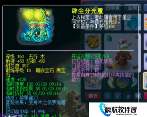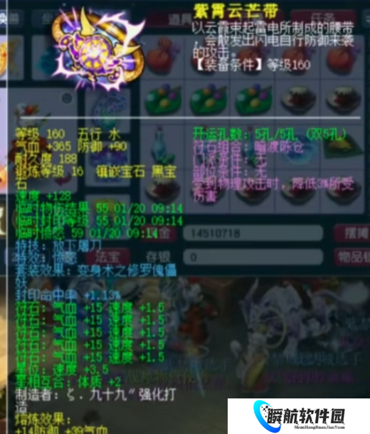 140级玄龙苍珀等4件装备,属于时间服特有的灵饰,160级愤怒腰带,词条放下屠刀加变身效果,160级罗汉金钟神佑五庄观专用武器,160级慈航普度上衣,160级笑里藏刀鞋子,不过单纯的笑里鞋价格不贵,但里面就嵌入了封印命中,价格一下子翻了20倍。