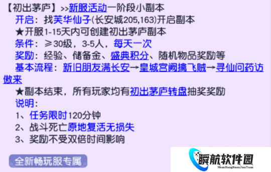 等级达到30级后,少侠们可组队开启初出茅庐新手副本,初出茅庐新手副本不但会奖励经验、储备金、宝石和恢复药品等前期关键资源,还是我们结交朋友的重要途径,大家在任务的同时,千万不要忘记交朋友哦。