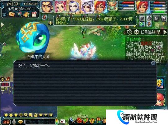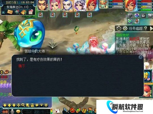 打完两场休息一下,开始小游戏玩法,在海边采集药草,当点击出现下述提示时,即为采集成功,上交给林老汉后获得奖励。