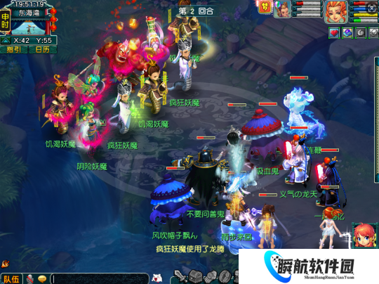 馋嘴小妖的门派是地府,两边的“贪吃怪”是女儿村,使用封印技能。“好吃鬼”则是魔王,主要使用飞砂走石或者三昧真火。