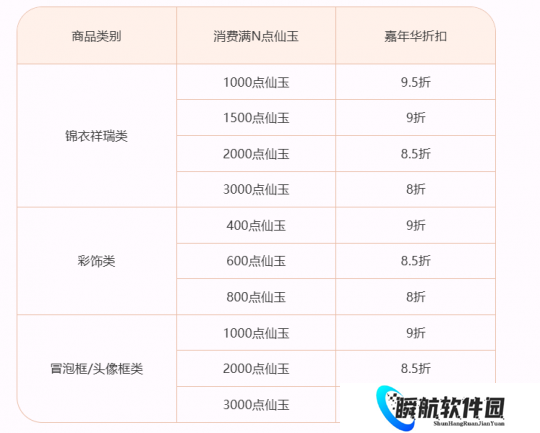 活动期间,玩家以原价自购霓裳宝阁锦衣祥瑞类、彩饰类、冒泡框和头像框类商品,消费仙玉达到指定档位时可享受嘉年华折扣价格!