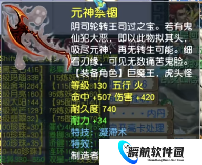上来第一包就出了130级双蓝字斧子,伤害+420,命中+507,耐力+34,特技是凝滞术,特效是简易。