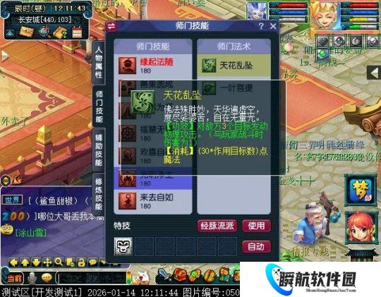 天花乱坠,这个应该是主要的烧双技能,从效果描述来看,类似于五庄的飘渺式。