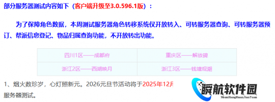 下面是本周测试服的维护情况,2026年元旦活动即将开启,测试服23日至24日开启测试。