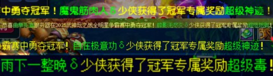 曲阜孔庙服战队勇夺武神坛明星赛冠军后,参与报名的九位角色均获得了领取超级兽诀的资格。这也是继武神坛巅峰赛后,他们再次开启这一珍贵奖励。