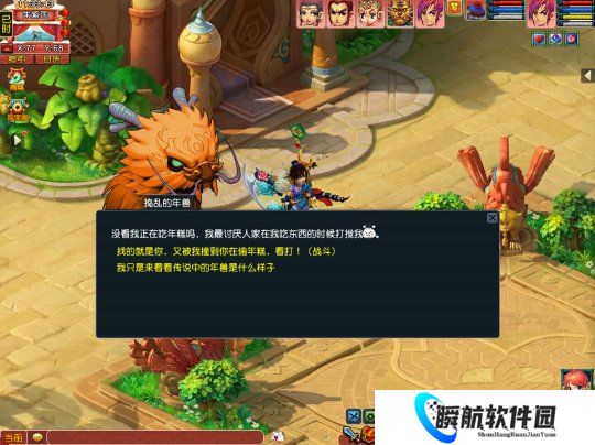 捣乱的年兽属于上古野兽,十分耐打,普通兵器法术难以对它造成有效伤害(不会死亡),所以巧妙地使用物品是十分重要的。相信聪明的少侠也很快会发现年兽的最大弱点——害怕七彩烟花。