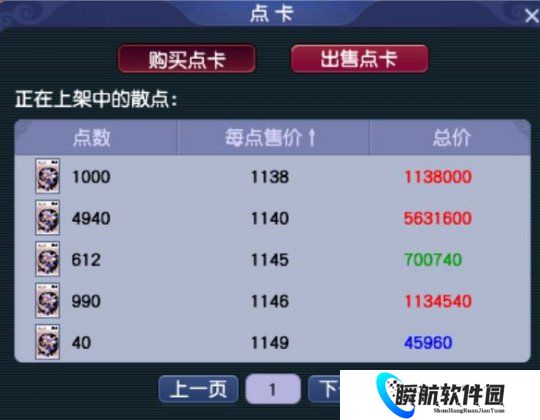 【MHXY】的点卡价格为1138两/点