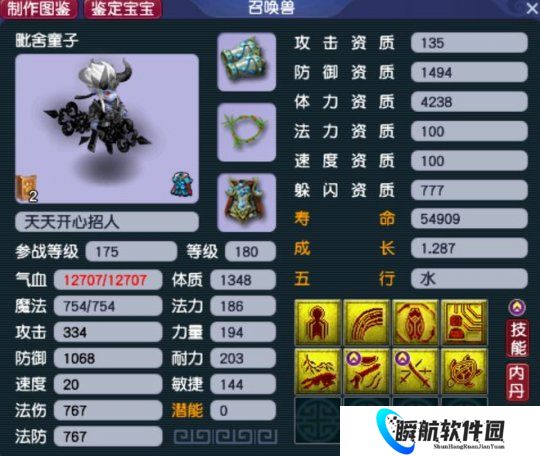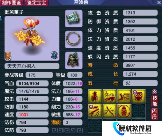 从「朱哥」的宝宝配置来看,多只赐福「超级感知」配速和须弥宝宝构成了相对完美的「反隐体系」,这就是一线狮驼对帮派联赛的顶尖理解。值得一提的是,「朱哥」开场使用的御风金蝉看似普通,却有着极高的战术价值。不但能为人物提供速度,尽可能保证第一回合的先手优势(防止因气血不足导致使用疯狂鹰击失败的情况)。还能第一回合直接召唤赐福「超级感知」的鼓舞宝宝登场,将打击面和伤害同时拉满。