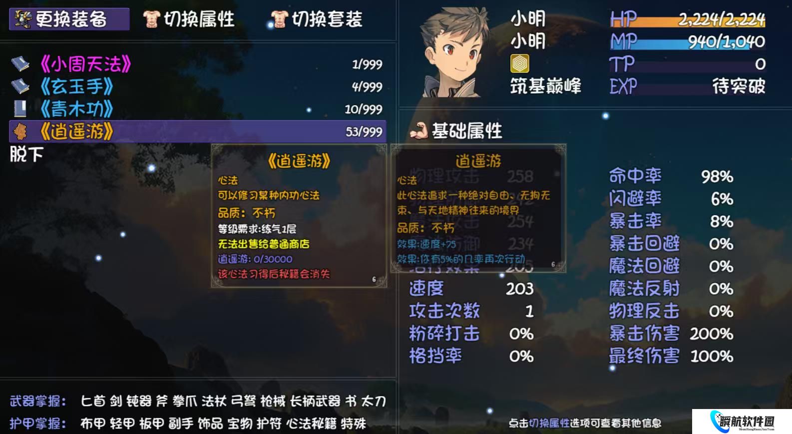 刷够六个筑基丹材料,两个给队友筑基,四个给珍馐任务用,直接逍遥游走起(如果你想换巴掌也行,确实很强,但我是再也不想再练一遍nt巴掌了)