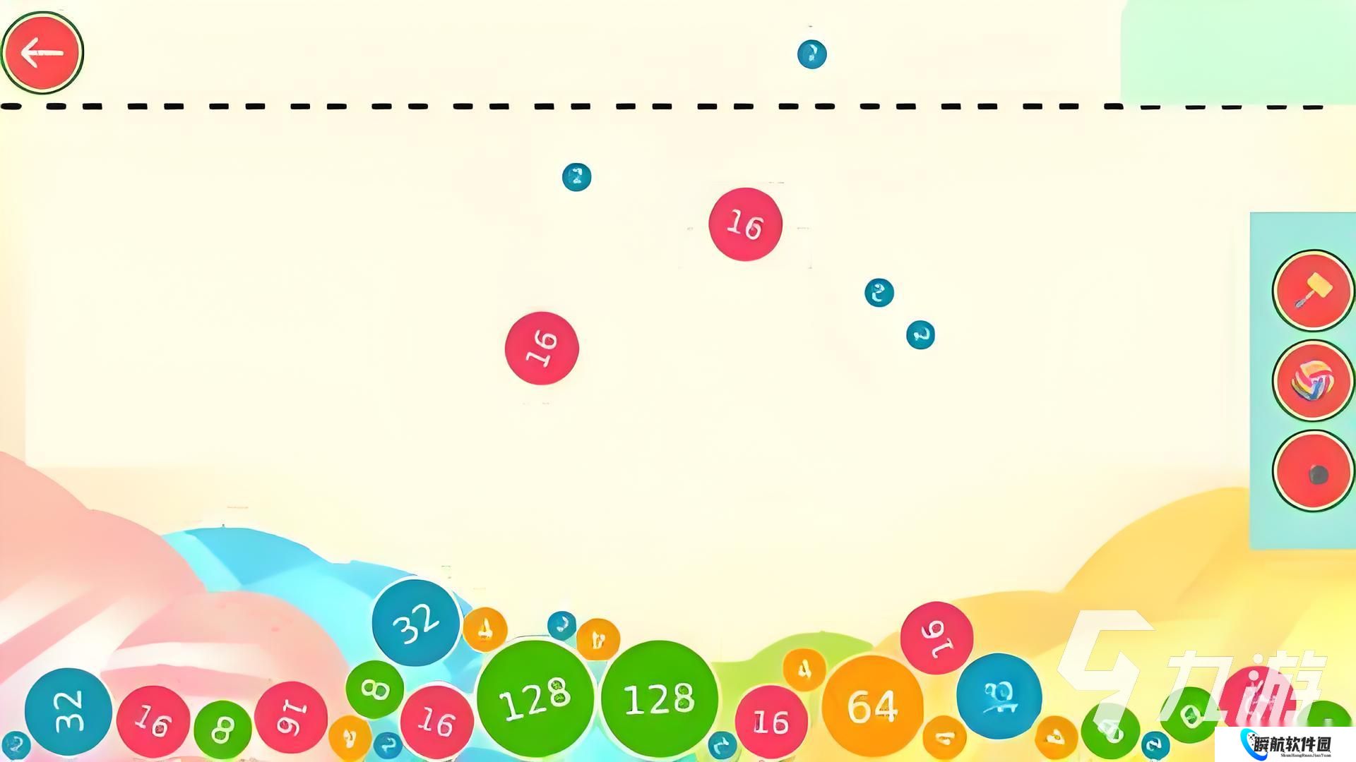 2048大合成中的所有数字全都以球状的形状出现,这些球状的数字会从空中掉落的地面上。当数字掉落到地面上以后,数字都会出现滚动的动态效果。所有的数字球都采用了不同的颜色进行搭配,让玩家们能更清楚的把边界给划分出来。玩家在合成数字的时候不能无脑的进行操作,而是需要将数字球的落点位置给判断出来才行。这样更方便大家用相同的数字球来融合。