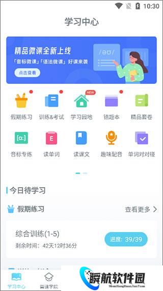 翼课学生app怎么用,在本站下载好翼课网英语口语训练app,进入“学习中心”板块,可以看到错题本、作业以及考试等内容,在“翼课学院”界面,您可以做任务,训练提高英语能力的呦,有单词对对碰、疯狂猜单词、连词大作战等等。