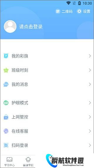 5、在“个人中心”界面,可以看到我的彩旗、班级时刻、我的消息,同时还有护眼模式等功能帮助你更好的进行学习。
