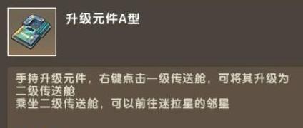 首先需要玩家制作一个升级元件A型,可以升级一级传送舱到二级。