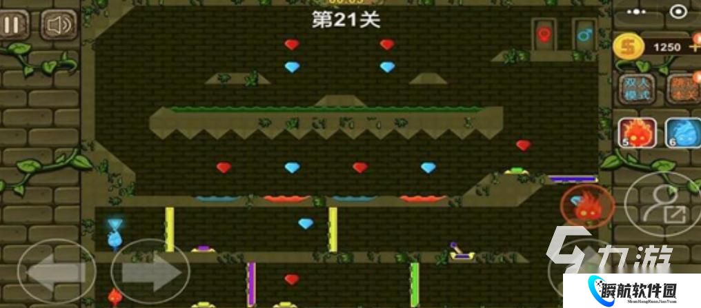 冰火人:森林迷宫主打双人协作的闯关,玩家要操控冰人与火人两个角色,通过二者配合打开机关,每个角色都有自己的特点,需要结合关卡设定开启挑战,关卡越往后难度越高,两个角色可以通过互相配合破解机关,操作很简单,用虚拟摇杆就能控制角色,喜欢这种双人合作的玩家,可以联机实时配合,也支持单人切换操控双角色。