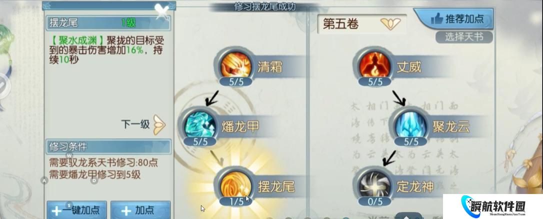 配合天书收益翻倍:灌魔后需同步调整天书,如【聚水成渊】搭配 “驭龙” 天书增伤 20%,【步云】搭配 “留霜” 天书可叠加 12% 伤害减免,技能与天书的协同效应远大于单一强化。