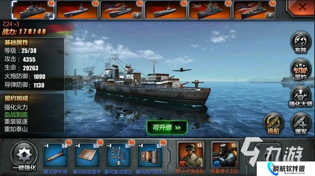 一个二战背景策略海战手游,游戏不仅高度还原了英美德日四国的百余种经典战舰的外观和性能,而且还还原了数十场二战中著名海战战役,玩家可以指挥自己的舰队参与其中。游戏创新性的设计了盟约合击系统,不同国家的特定战舰可以触发强力合击技能,而且加入了指挥官技能,需要根据战场局势选择合适的指挥官和战舰参战。