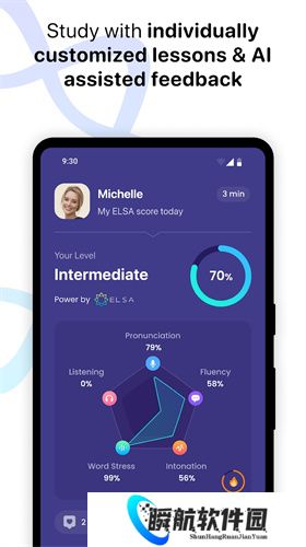 Elsa Speak是一款专业的英语口语学习软件,具有多种功能,包括在线跟读、发音纠正、语音识别等。通过使用该软件,学生们可以轻松地提高自己的英语口语表达能力,自己独自在家也能自学英语口语,成为native speaker。
