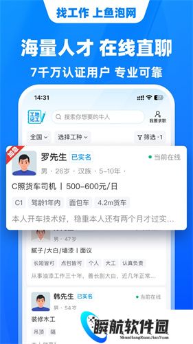 鱼泡网招工人app是一款专注于企业施工招聘工人的找工作平台,企业可在平台上发布各个岗位招聘信息,让工人能找到合适的工作解决就业难题。软件服务的行业涵盖了工地工人、装修师傅、工厂工人、货运司机、物流配送、餐饮服务等几百类工作岗位,每天都有海量招聘信息发布,其服务行业涵盖了不同的年龄范围,让你不必担心年龄问题。