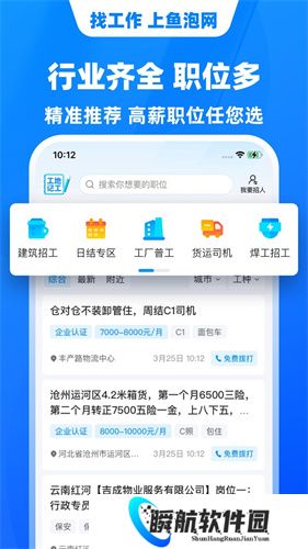 鱼泡网招工人app是一款专注于企业施工招聘工人的找工作平台,企业可在平台上发布各个岗位招聘信息,让工人能找到合适的工作解决就业难题。软件服务的行业涵盖了工地工人、装修师傅、工厂工人、货运司机、物流配送