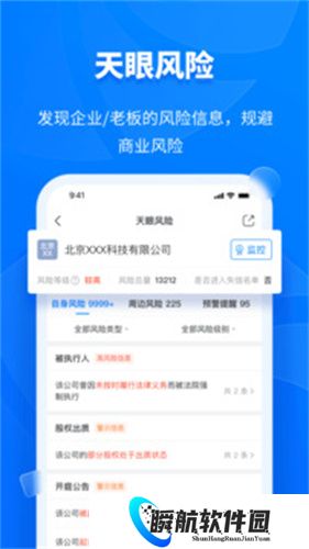 1、高效搜索公开商业信息简单快捷、企业信息全面展示、天眼风险实时监控。