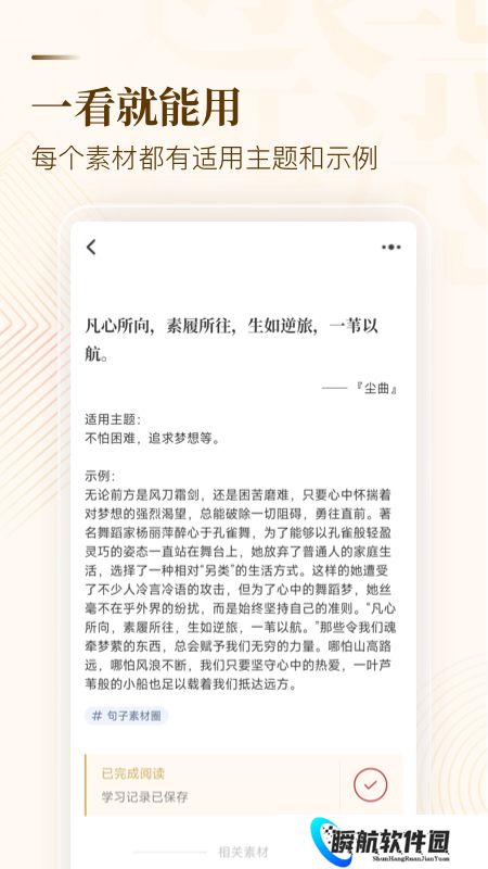 3、每一个素材,都提供了独家的用法解析和范例,看语言下次考试就能立刻用上。