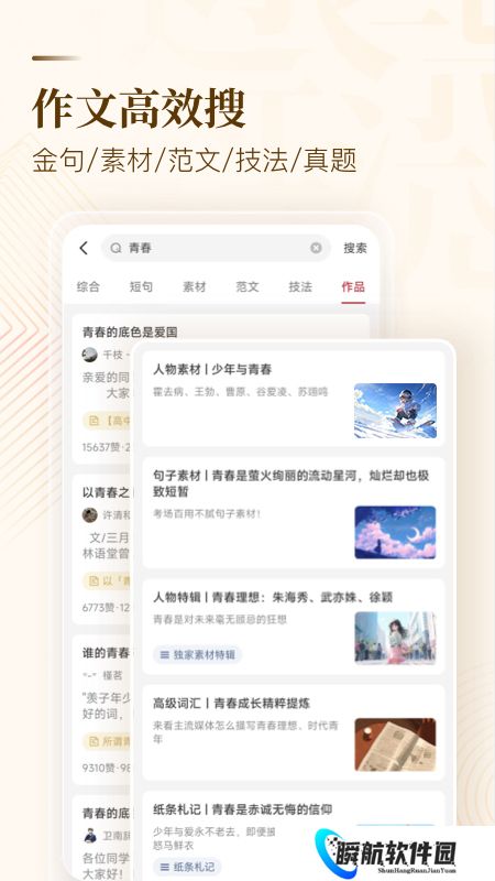3、配合系统的议论文、记叙文等写作技法指导,素材+技法组合拳助你高效提分。