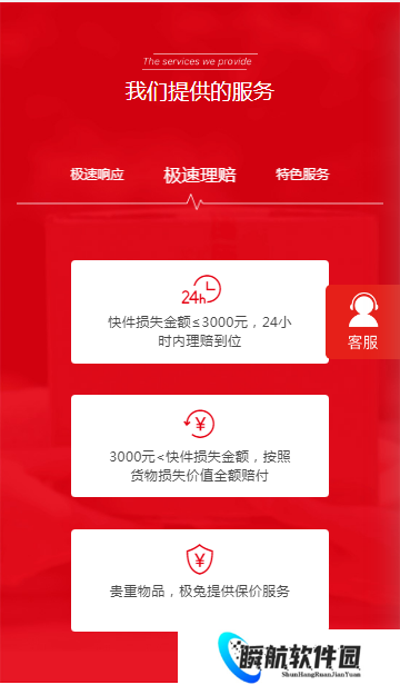 3、平台为消费者们提供三大服务,极速响应物流订单,极速理赔和特色物流服务。