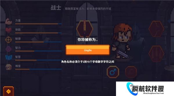 2、然后命名游戏角色,目前游戏角色名字需要2-15字符之间;