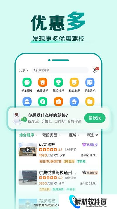 1、精选全国优质驾校教练,距离近,口碑好,优惠多,驾考报名也更方便。