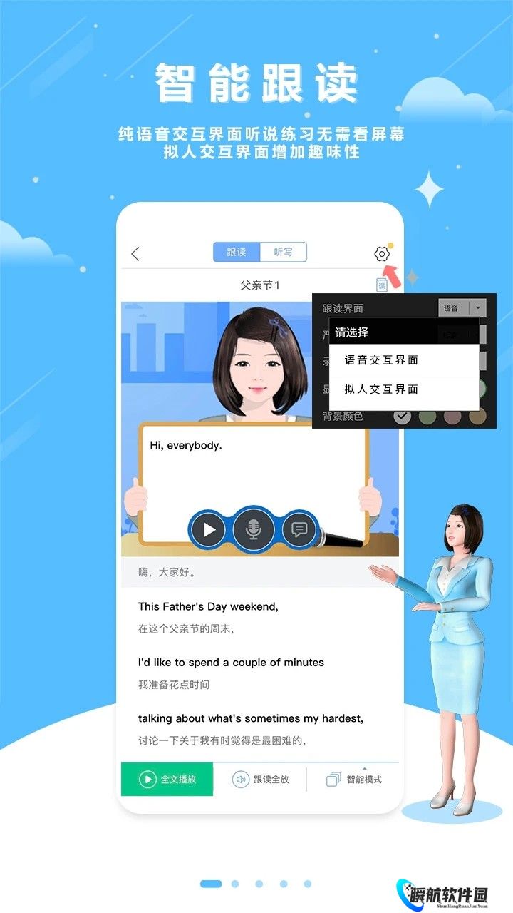2、实用播放器助力听说练习,简洁实用的听力播放器不仅支持跟读,还能进行词汇练习,全面提升您听说能力。