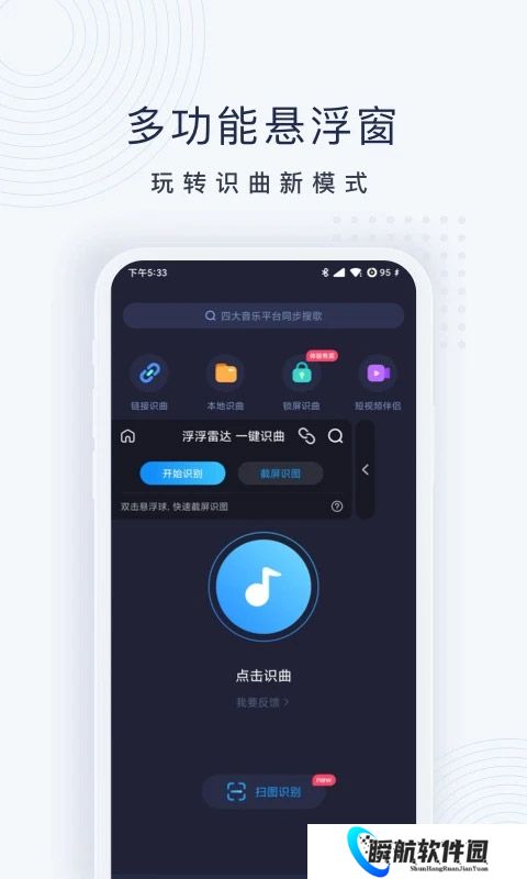 浮浮雷达识别歌曲app是一款智能的听歌识曲软件,在该软件中所具备的音乐识别功能极为的强大,自己在室外、直播、电台、短视频、游戏等等场景中只需要开启音乐识别功能,就能够精准的帮助你找到相应的歌曲信息。进行识别时就算只有一句歌词或者伴奏也可以进行识别,但是所识别的信息越多,所识别歌曲的速度也就会越快、越精准。