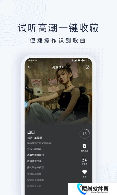 1、搜索到片段的歌曲后可以先试听音乐的高潮部分,确定是自己喜欢的音乐再一键收藏起来。