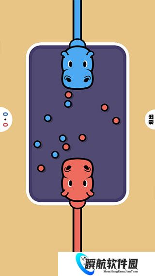 点击操控河马吃掉小球,吃到自己颜色小球时获得2分,吃到对手颜色小球时扣除1分,先得到80分获胜!