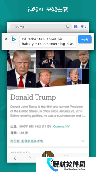 bing国际版是一款能够给各位网友带来很多帮助的搜索引擎软件,旨在为各位网友带来更加合理、优质和精准的中英文搜索结果,还带来了独特的气泡模式,实现更快速的浏览体验。软件每天同步必应今日美图并将其设为壁纸,还可使用上千张历史美图作为壁纸。该软件能够接收来自主动体验智能引擎的重要信息,并为网友定制个性化的信息卡片到首页。它具备通用型搜索引擎应用的功能,内置浏览器,并提供网页、图片、视频、词典、翻译、资讯、地图等全球信息搜索服务。